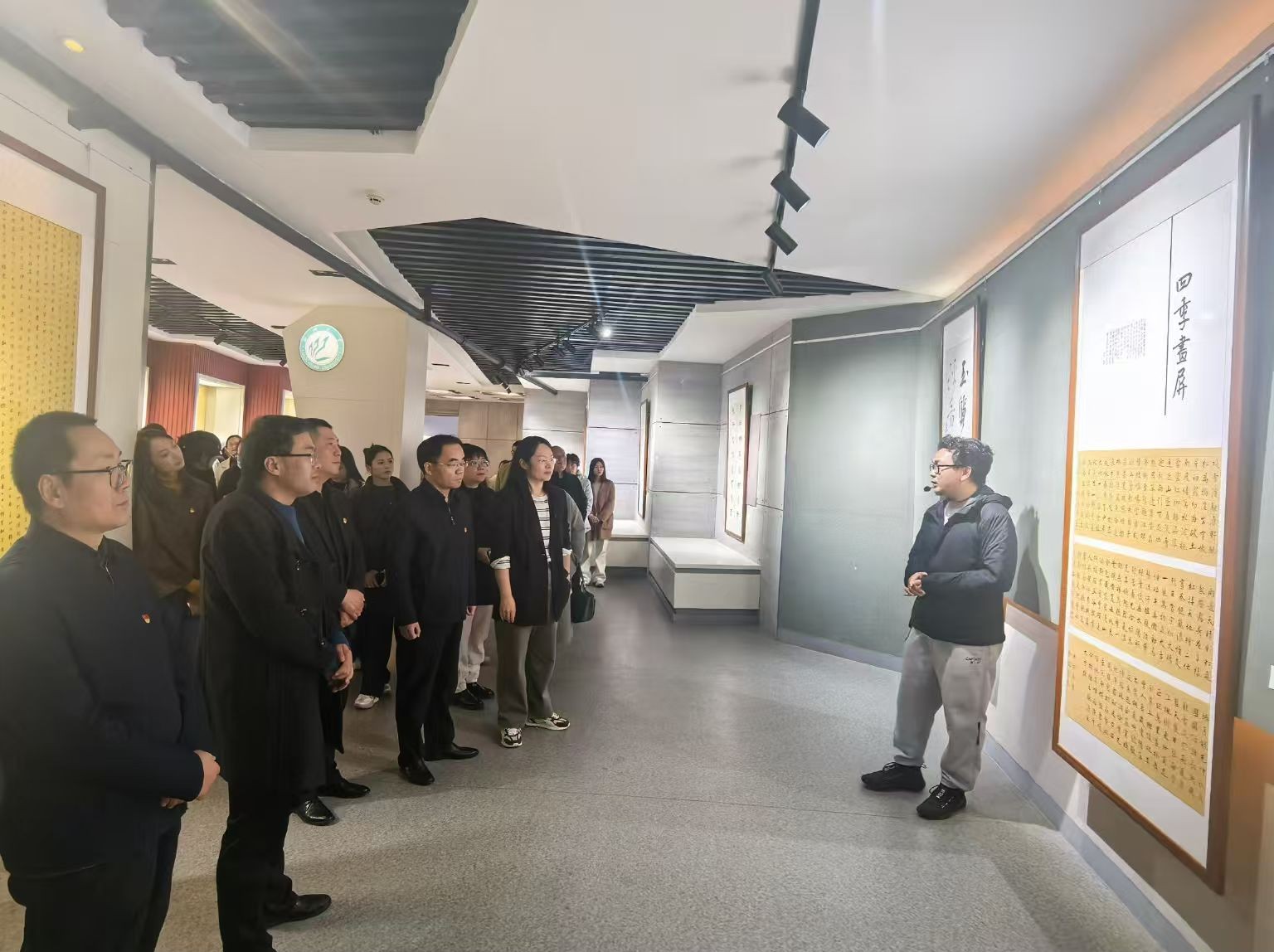 为深入学习贯彻党的二十届四中全会精神,进一步推进全面从严治党,提高党员干部廉洁意识,11月13日下午,18av 和美术与设计学院组织全体教师党员前往西校区文华苑美术馆“廉心焕彩·清风聊大”廉洁文化作品展,联合开展主题党日活动。
