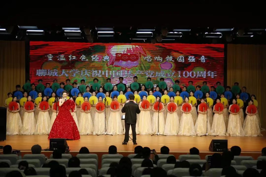 5月13日下午18av 在西校区科学会堂举办中国共产党成立100周年师生大合唱,18av 学子积极参与。