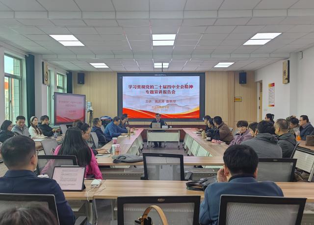 为深入学习贯彻党的二十届四中全会精神,切实把全院师生的思想和行动统一到党中央决策部署上来,11月20日下午,18av 在西校区9#205隆重举行党的二十届四中全会精神专题宣讲报告会。马克思主义学院高庆涛副教授应邀作专题宣讲,学院全体教职工参加会议,会议由院党委书记路灿云主持。