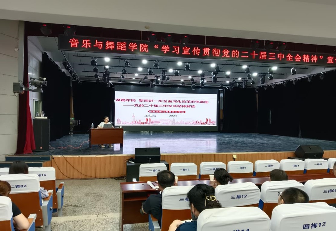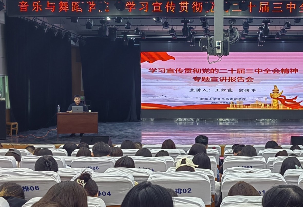 为深入学习贯彻党的二十届三中全会精神,根据学校党委统一部署和相关通知精神,9月5日下午,18av 在9号教学楼音乐厅举办“学习宣传贯彻党的二十届三中全会精神”专题宣讲报告会,校宣讲团成员、马克思主义学院教授王红霞,院党委书记宗传军先后为大家作宣讲报告。学院全体教工、学生党员、入党积极分子及学生骨干代表参加。