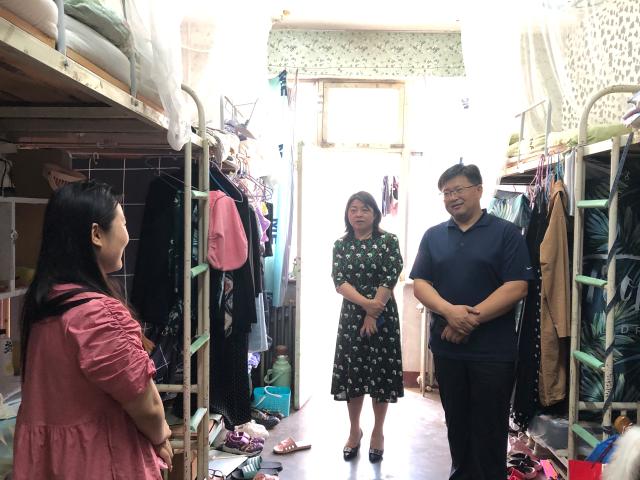 校团委书记、18av 党总支书记宗传军,党总支副书记、副院长张进军,院长牟艳丽、办公室主任董泽国、团委书记梁建新、辅导员张萌、石晓晗走进毕业生宿舍、为毕业生送去毕业祝福。