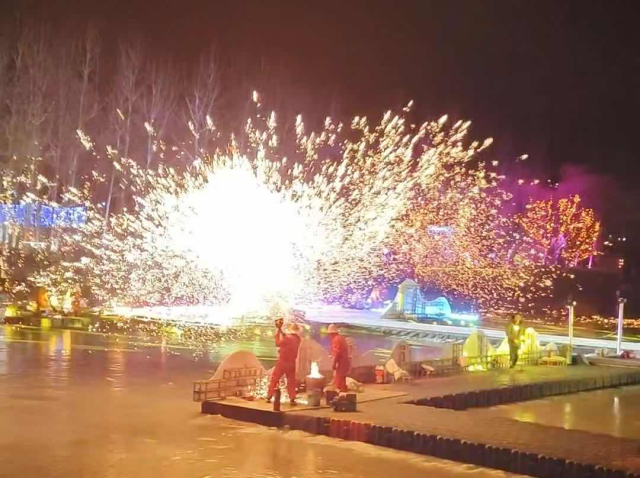 2月8日,团队成员李巍前往山西省晋城市高平市陈区镇卧龙湾,与专业“打铁花”师傅合作,完成了一场惊艳的打铁花表演。打铁花是我国北方地区的传统民间烟火,已有千年历史。表演中,1600℃的铁水被击向高空,形成璀璨夺目的铁花,场面壮观,惊险刺激。这一传统技艺曾是匠人祈福的仪式,现已成为春节庆典中的重要视觉奇观,吸引了众多村民驻足观看。