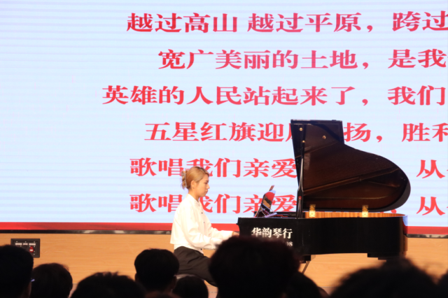 学院教师李文哲登上舞台,指尖在钢琴上流淌出激昂旋律,在场师生纷纷起身,共同唱响《歌唱祖国》。熟悉的歌词、嘹亮的歌声回荡在会堂,不仅展现了新生们的青春风貌,更凝聚了师生情感。