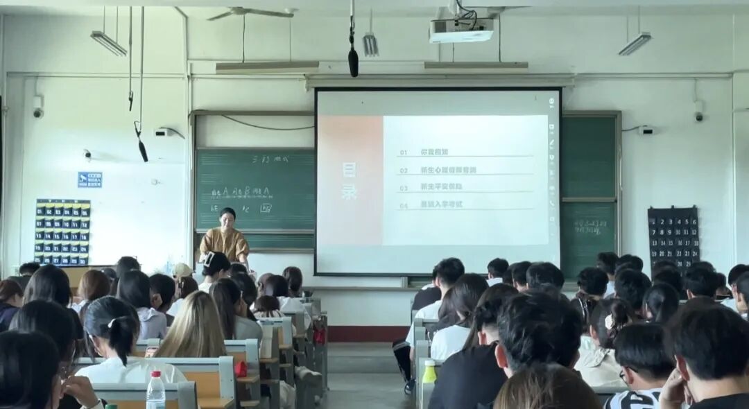 为有效引导学生们树立积极、阳光的心态,保持乐观的态度和坚定的信念,辅导员付衍丹向同学们普及了心理健康教育的相关知识,强调了心理健康在大学生成长过程中的重要性,并介绍了学校心理咨询中心的各项服务和预约方式。她提醒新生们,面对大学新环境的挑战和压力,要学会及时调整心态,积极寻求帮助,保持健康向上的心理状态。