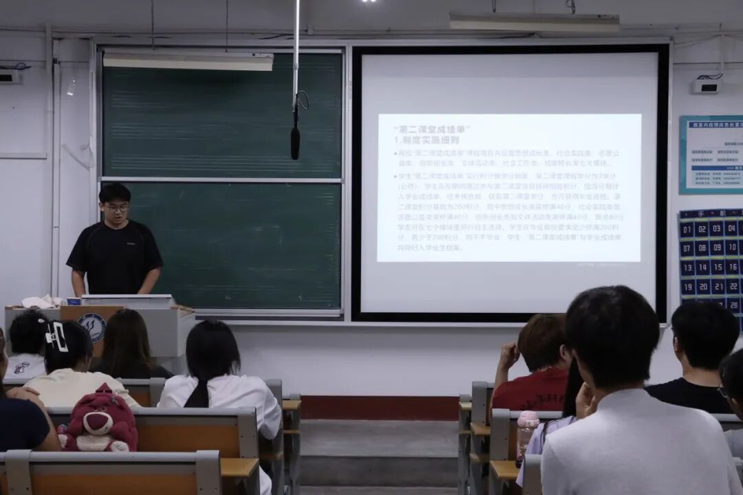 为鼓励同学们积极参加社会实践活动,辅导员王森远详细阐述了社会实践的重要性及参与途径,分享了学院过往社会实践活动的优秀案例,包括深入社区开展文艺演出、到偏远地区进行音乐支教等,让新生们对社会实践的具体形式和可能带来的收获有了更直观的感受。他提到,社会实践不仅是将理论知识应用于实际的有效方式,更是锻炼同学们综合能力、拓宽视野的重要平台。