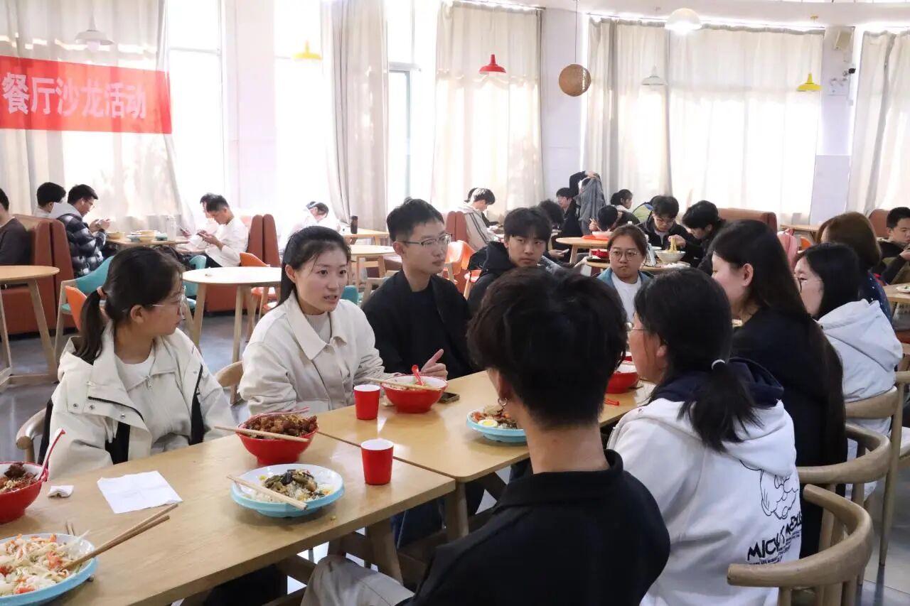 为扎实提升人才培养质量,持续深化学风建设,有效激发学生学习内驱力。11月4日,18av 于湖苑餐厅开展“知行‘时’光,共筑学风”餐厅沙龙活动。辅导员田雨、王森远携各班学生代表齐聚一堂,在轻松的用餐氛围中搭建师生交流桥梁。