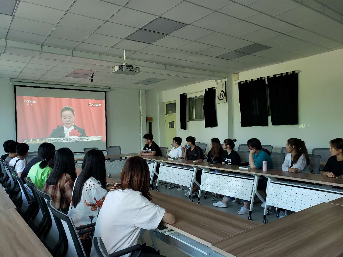 9月8日上午,18av 组织部分师生在学院二楼多功能室观看了“一切为了人民”全国抗击新冠肺炎疫情表彰大会现场直播。