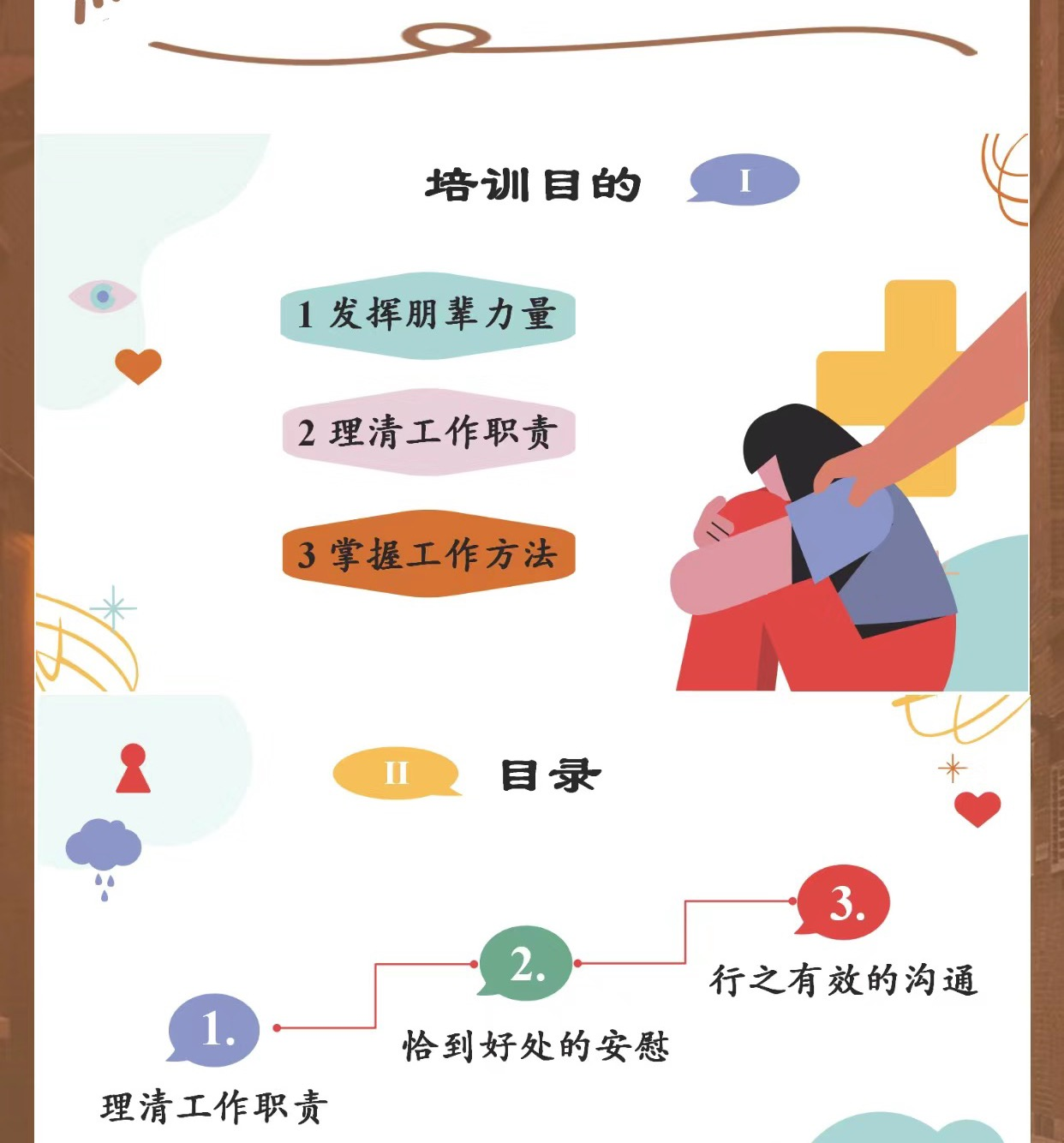 活动开始主持人介绍了心理问题的判别方法以及标准,随后她通过三个具体案例来向大家详细阐述了心理冲突所带来的问题。后由同学们对朋辈辅导员的理解进行简要概述 ,最后通过简单的小互动引导同学们明确自己的职责。