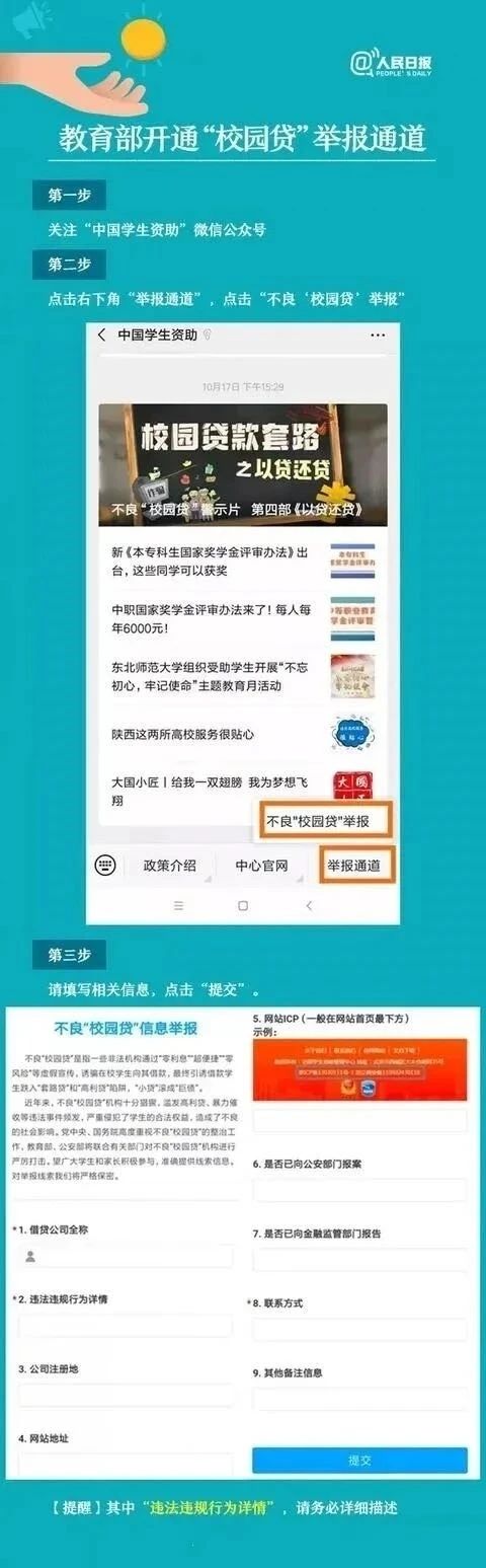 你可以通过“校园贷”举报通道,维护和保障自己的权益!我相信在未来的某一天“校园贷”终将会无所遁行,我们的社会环境会更加风清气正。