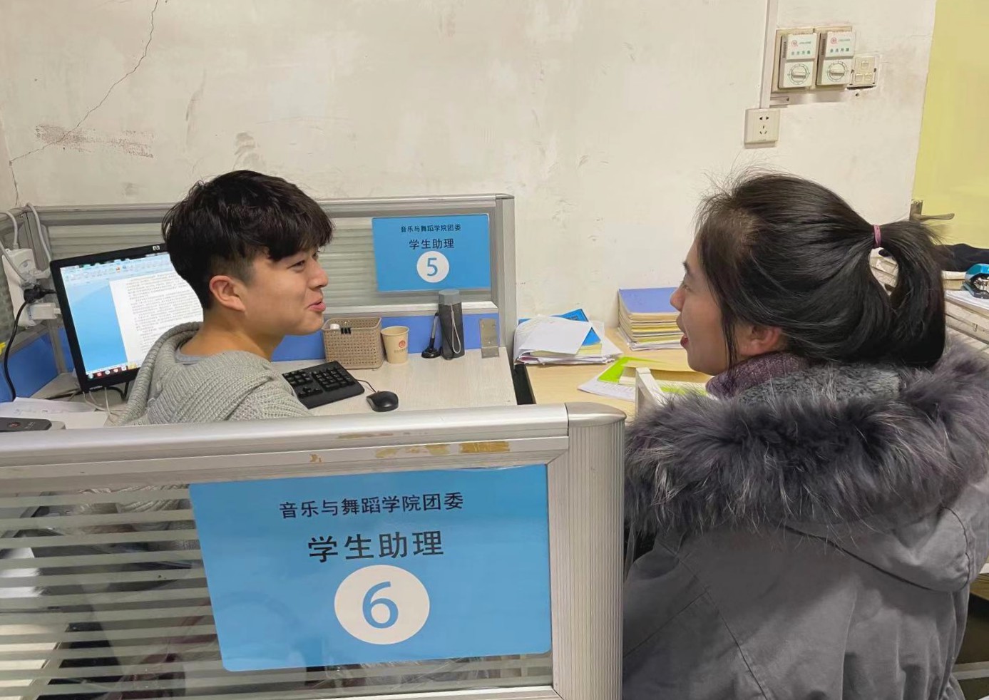 为深入了解勤工助学岗位学生的生活状况,11月30日,18av 18级辅导员张萌走访学院勤工助学岗,对勤工助学同学表示慰问。
