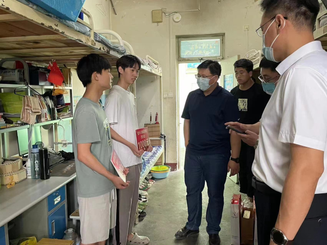 2022年6月28日,由党委书记宗传军带队,副院长王海华,党委委员、团委书记梁建新,辅导员陈蓝天、张萌,班主任查姣姣等老师,先后对学院4名同学进行宿舍走访,为家庭经济困难学生送去深切关怀和温暖。