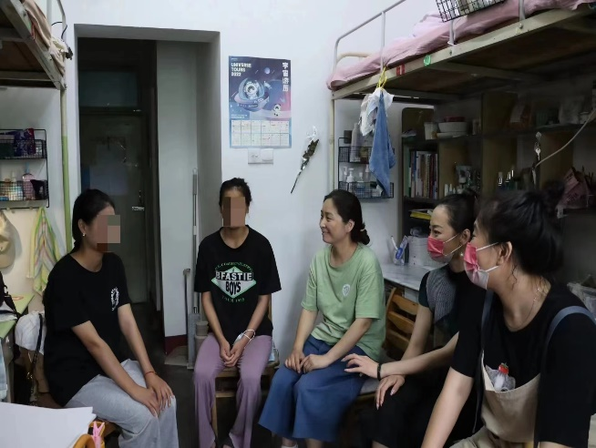 2022年6月28日,学院副院长王海华老师,张萌、查姣姣老师,来到学苑5公寓慰问家庭经济困难学生。老师与她们亲切交谈,了解和询问她们的家庭状况和学习情况。