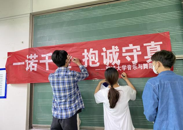 多名助学贷款毕业生参与签名活动,在写着“一诺千金,抱诚守真”的横幅上签上了自己的名字,每一位毕业生都怀揣着诚信感恩之心坚定地写下自己的名字,大家心中的感恩之情都体现在了横幅上的一个个名字中。