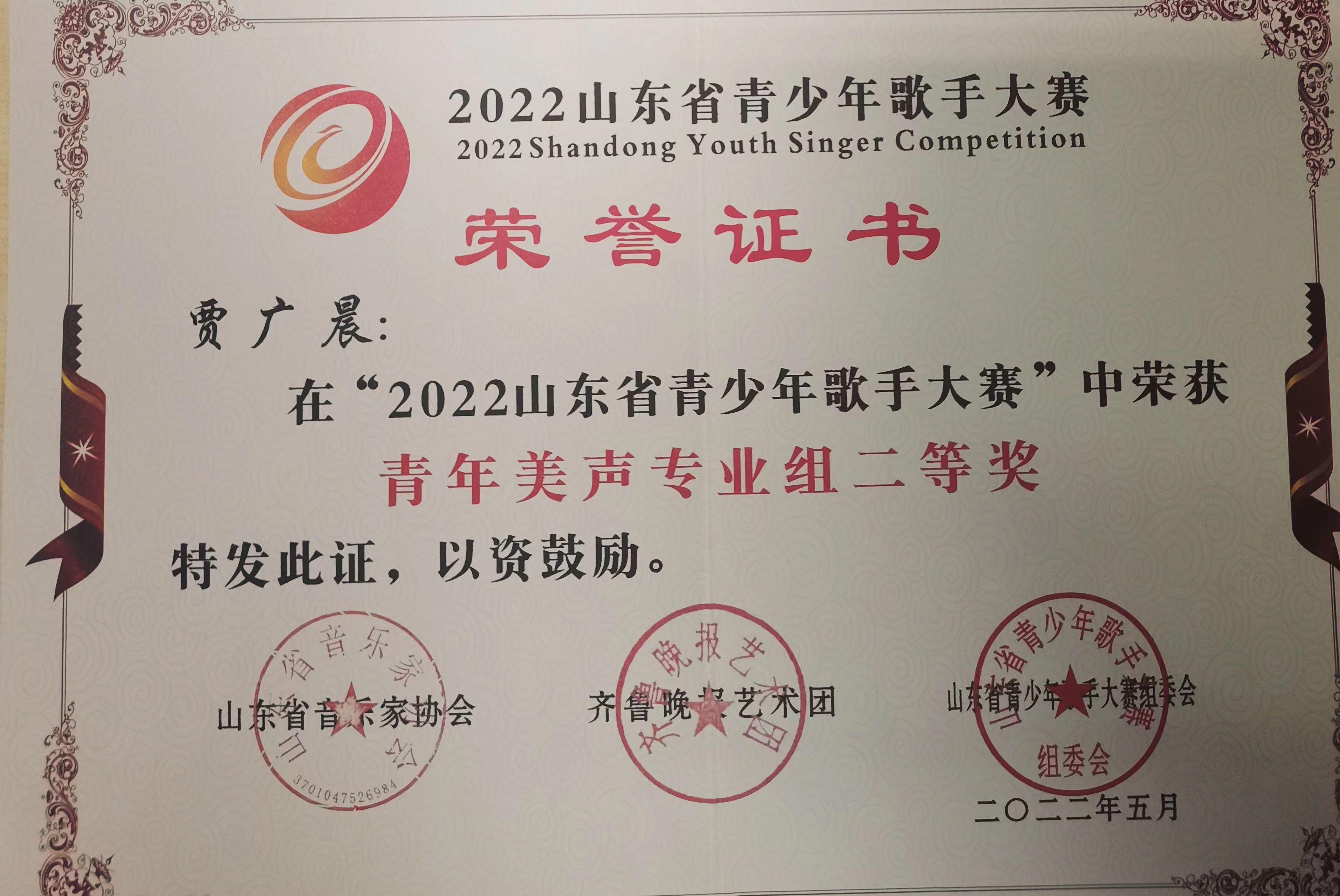 18av 贾广晨在”2022山东省青少年歌手大赛“中荣获青年美声专业组二等奖