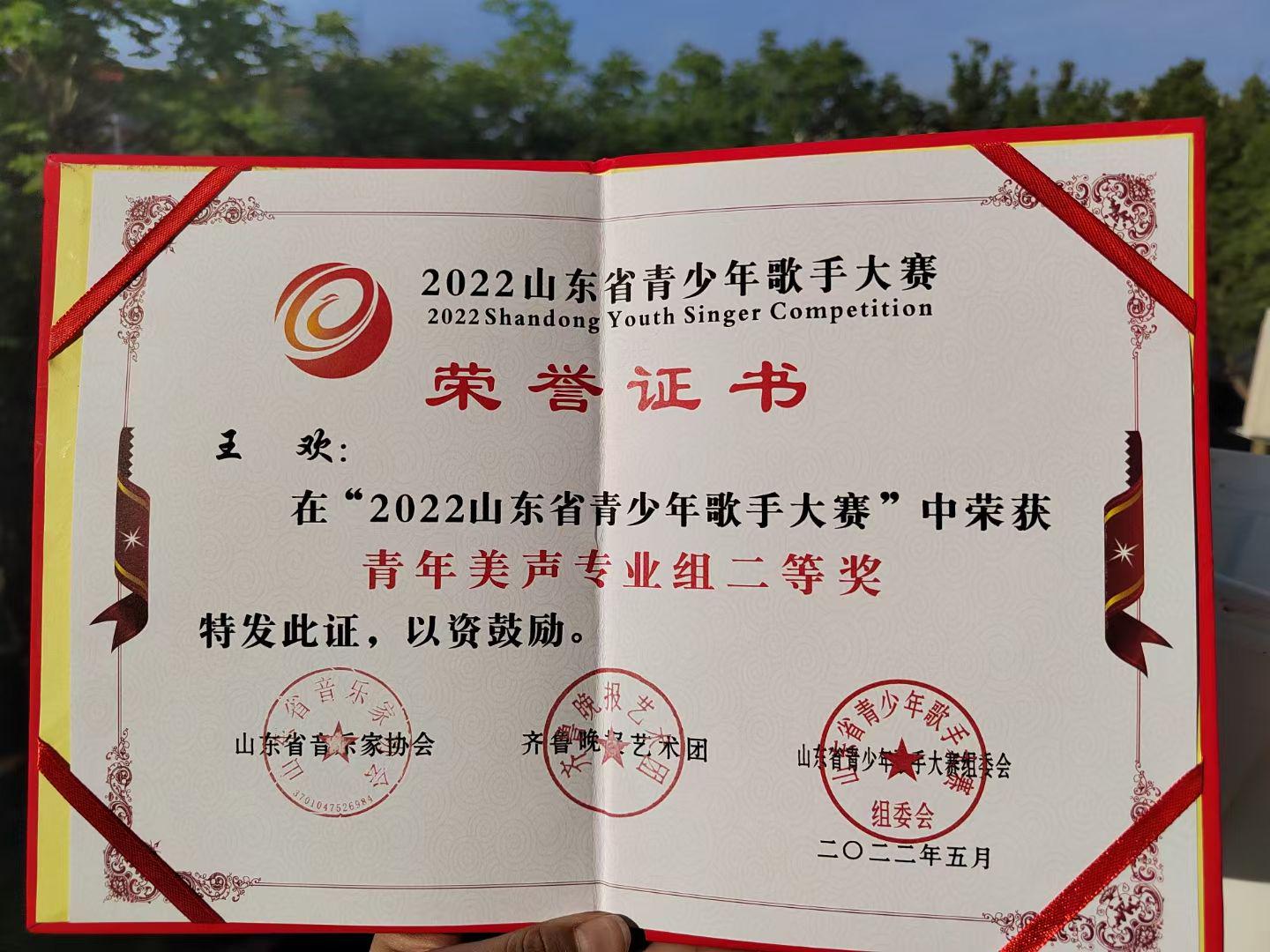 18av 王欢在”2022山东省青少年歌手大赛“中荣获青年美声专业组二等奖