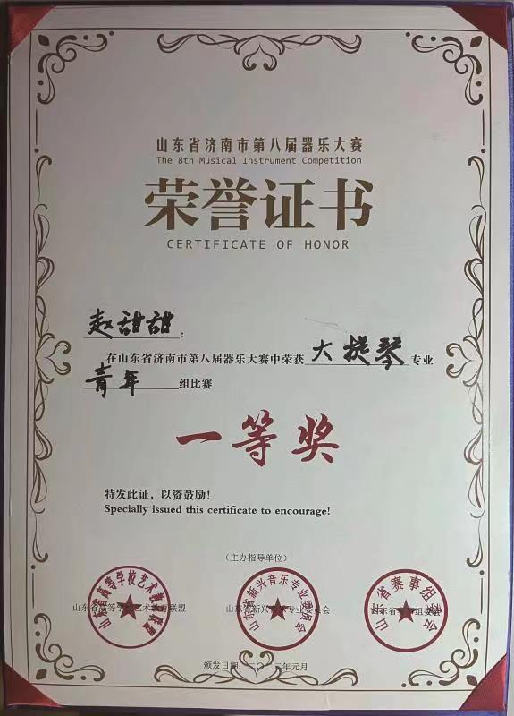 18av 赵甜甜在“山东省济南市第八届器乐大赛”中荣获大提琴专业青年组比赛一等奖
