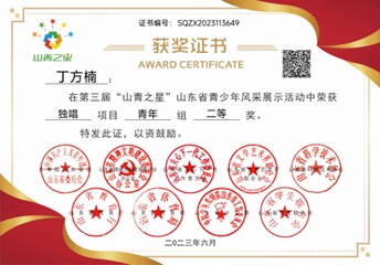 丁方楠荣获第三届“山青之星”山东省青少年风采展示二等奖