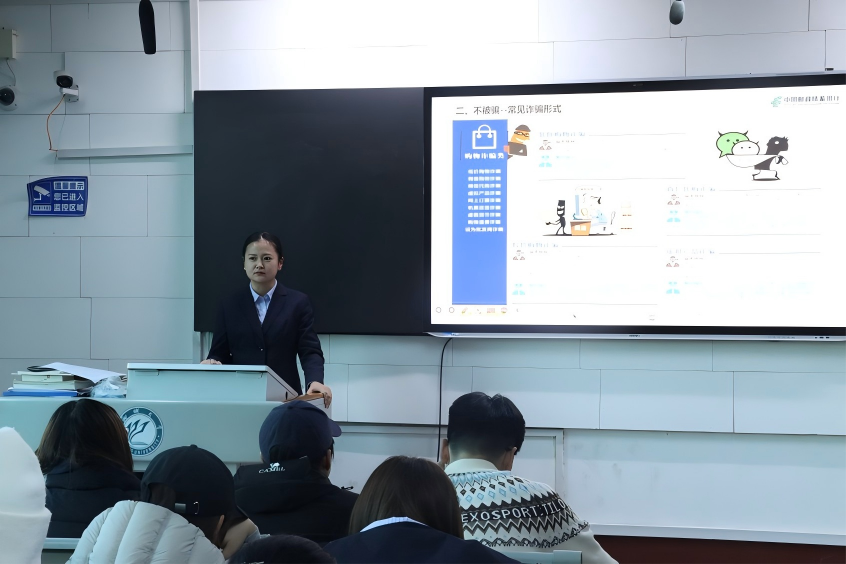 为进一步增强学生的反诈意识与实操能力,有效防范化解网络诈骗风险。11月20日,18av 于9#308教室开展网络防诈骗宣传讲座。活动特邀邮储银行财富顾问闫瑞雪担任主讲,2025级同学积极参与。