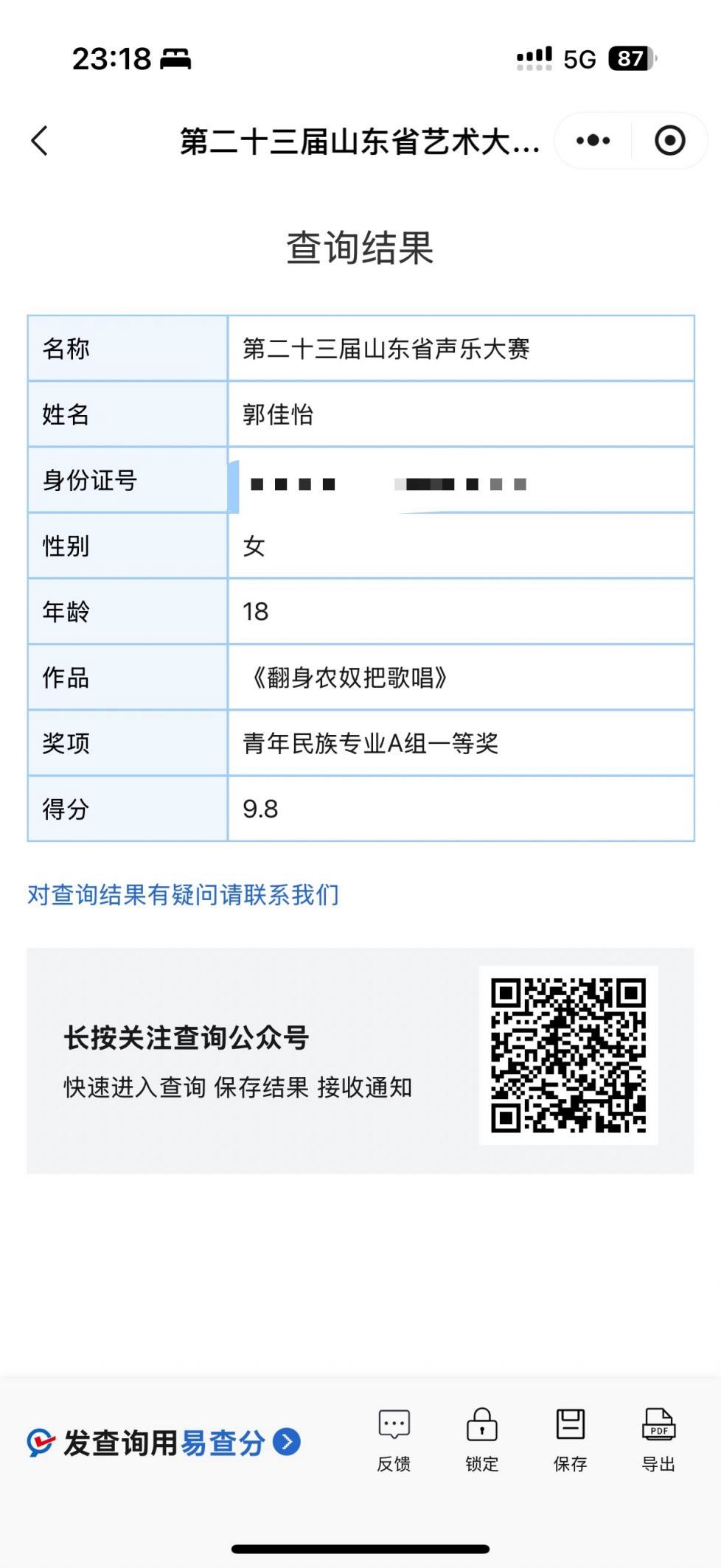 18av 家庭经济困难学生郭佳怡在“第二十三届山东省声乐大赛”中荣获青年民族专业A组一等奖。这一成绩的取得,不仅为学院争得了荣誉,也充分展现了家庭经济困难学生在逆境中奋发向上、积极进取的精神风貌。