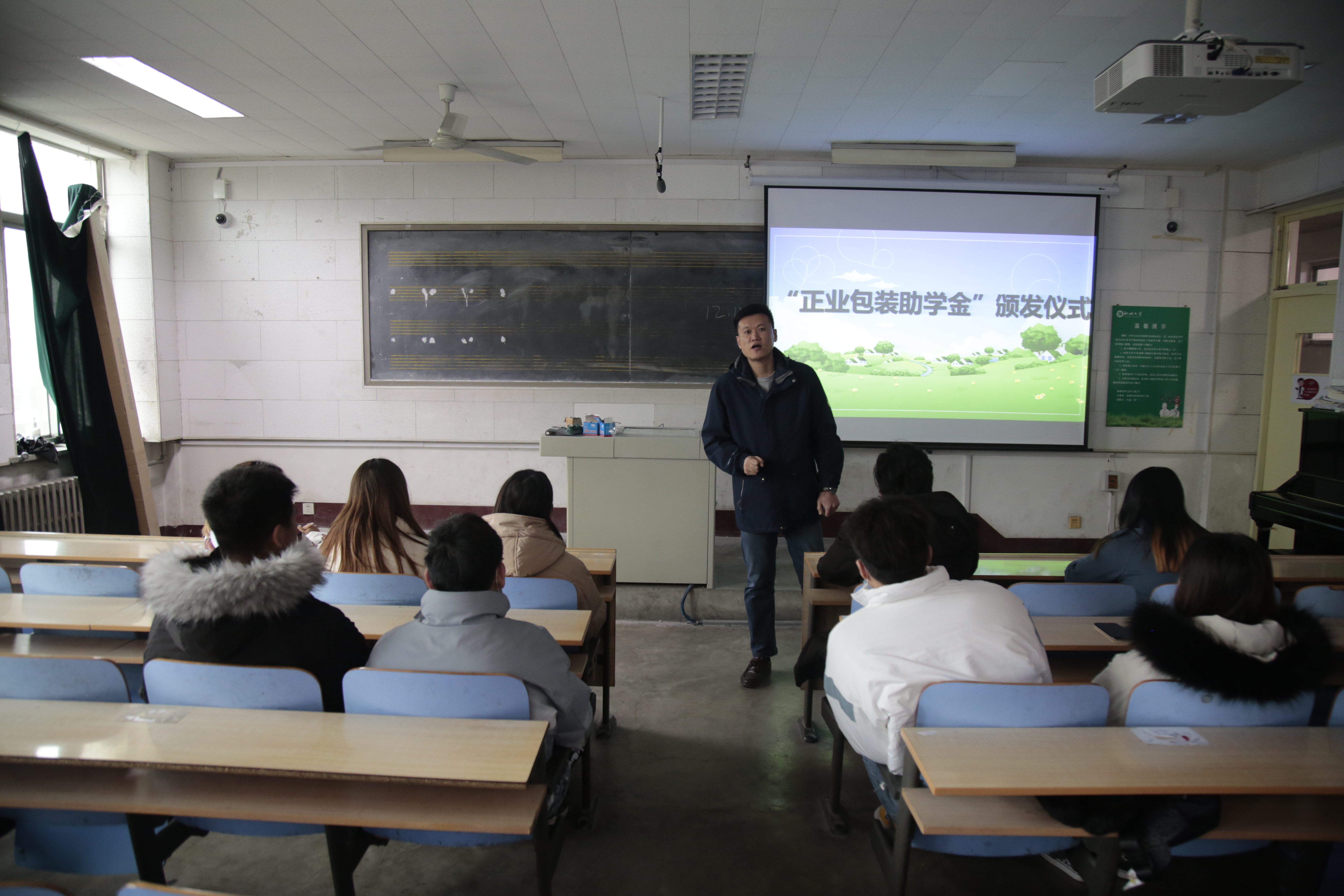 12月11日,18av 在学院9号楼201教室举行了第三期“正业包装助学金”发放仪式。学院团委书记梁建新,辅导员张萌,获得正业包装助学金的学生及部分学生代表参加了此次颁发仪式。