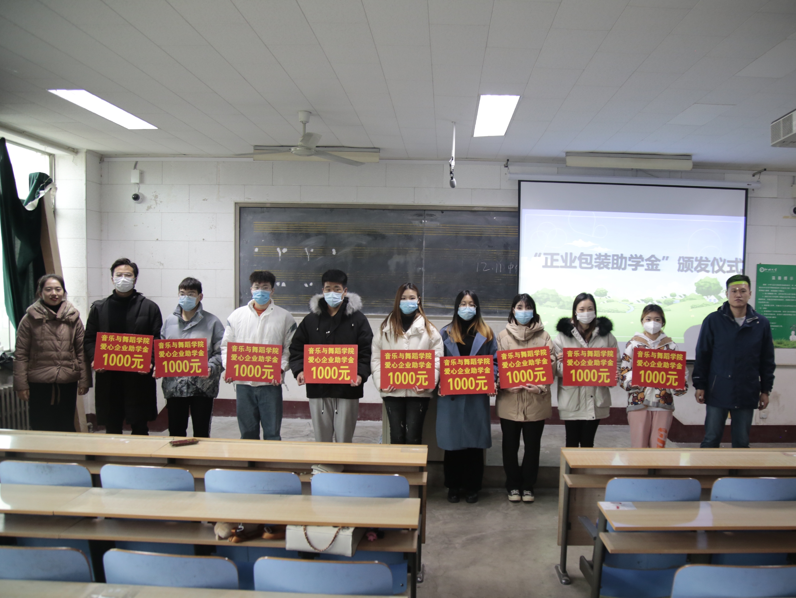 “正业包装助学金”是由聊城冠县正业包装公司提供的专门资助家庭经济困难学生的助学金,推荐学院中热爱祖国、品学兼优的家庭经济困难学生获得。企业负责人表示,不能让任何一个优秀的学生因为经济的原因影响学习、生活。我们愿意尽自己的绵薄之力去帮助这些学生,让他们早日成才,为祖国效力。