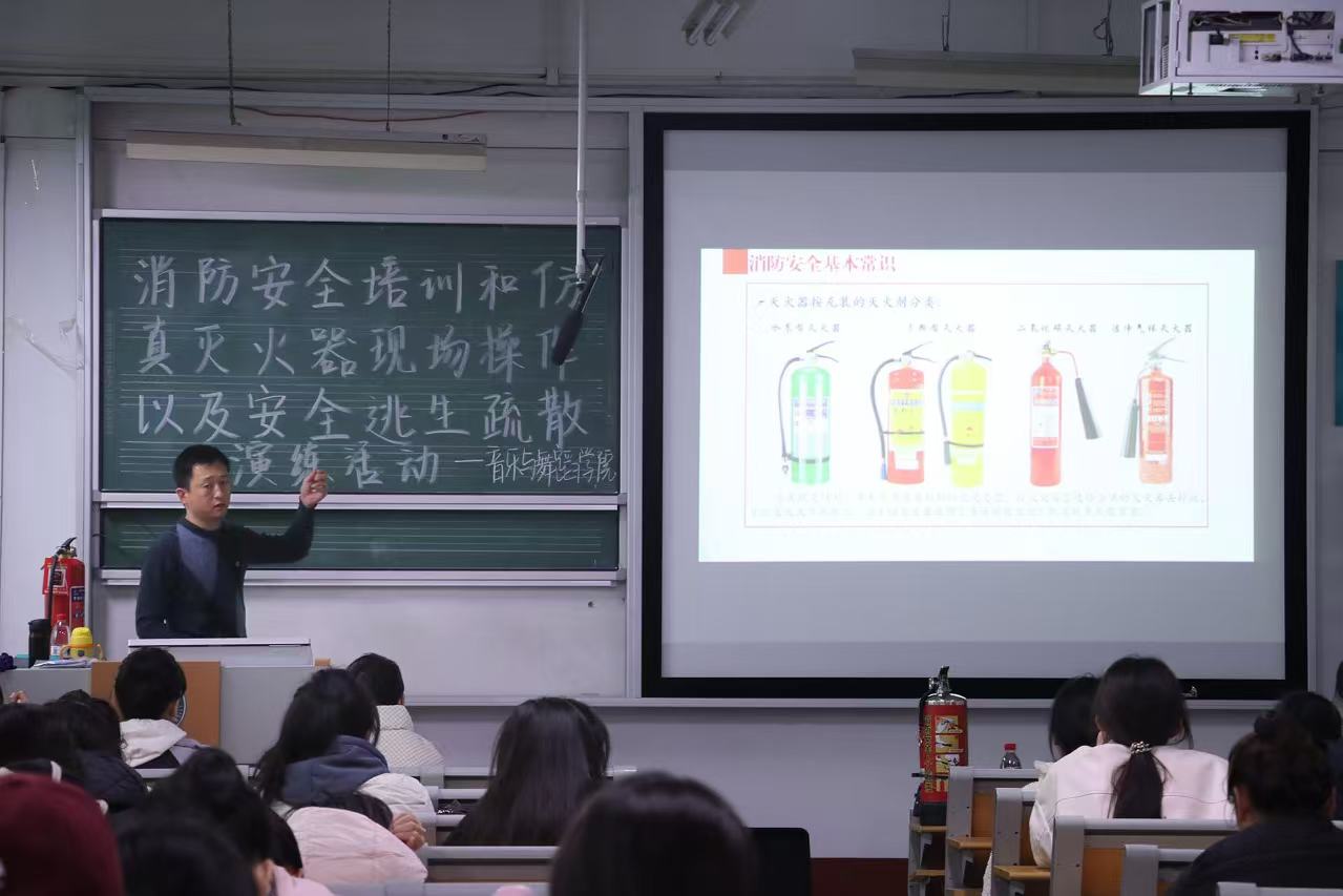 为切实加强学院消防工作,提高同学们的消防安全意识和应对突发火情的能力,11月11日,18av 于9#304开展消防安全培训和仿真灭火器现场操作以及安全逃生疏散演练活动,本次活动特邀18av 党委保卫工作部消防科马飞担任主讲人,2024级全体新生积极参与。