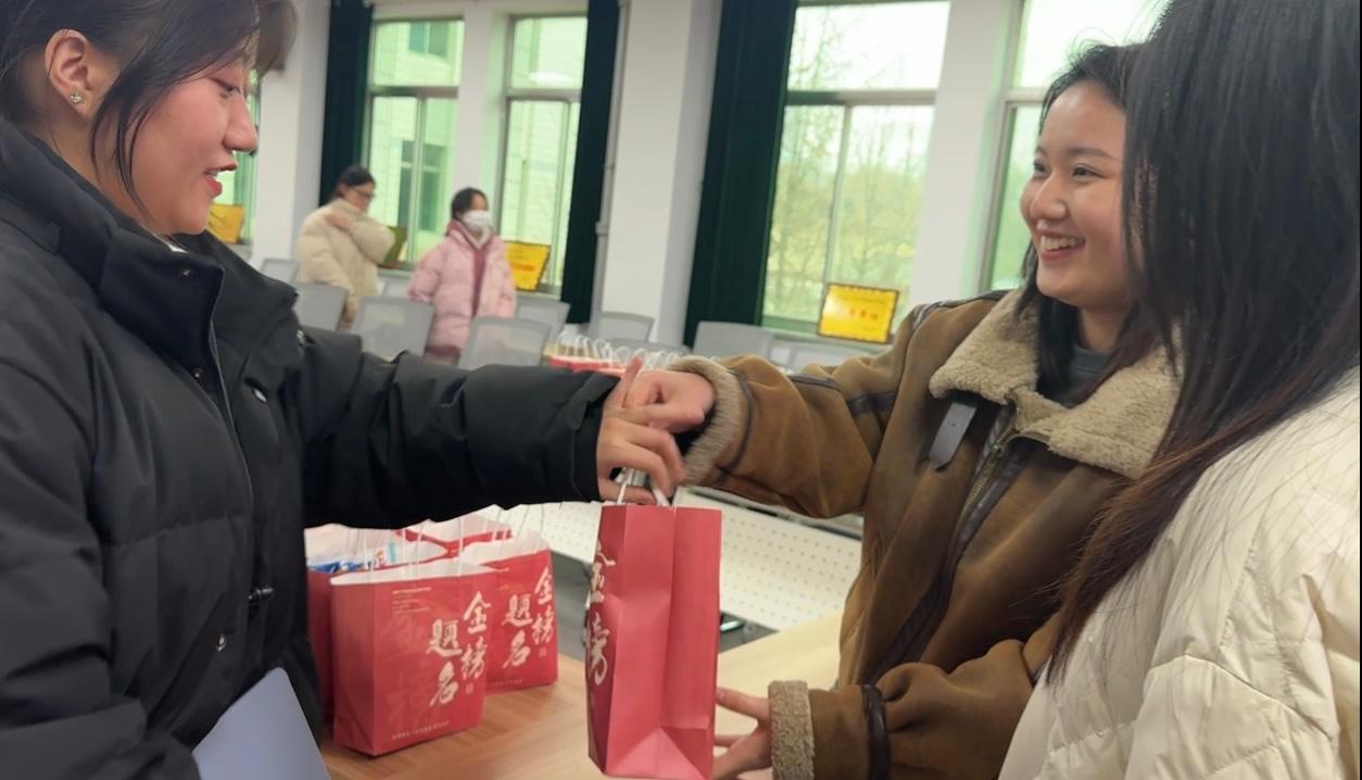 随后,老师们为考研学子送上了学院精心准备的暖心大礼包,将现场热烈的气氛推向了高潮,橙子、巧克力等每一样物品都承载着学院对考研学子的温情关怀和美好祝愿。