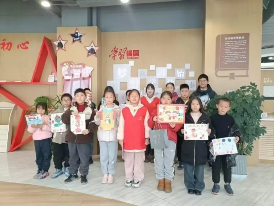 活动伊始,志愿者田玲通过"灵蛇纳福"讲堂开启文化探索之旅,巧妙融合经典故事、甲骨文"蛇"字演变历程及年俗传说生动诠释了生肖蛇的文化意蕴。随后进入"童绘祥瑞"创作环节,孩子们纷纷展示自己的创作,经专业评审,6幅作品分获"最佳创意奖""文化传承奖"等荣誉。活动尾声,参与者手捧获奖作品,与自创年画合影留念,定格下了这份独特的文化记忆与新春祝福。