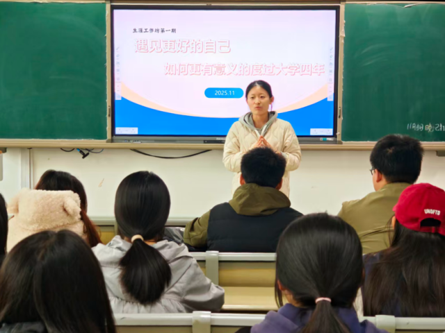 为拨开新生对未来的迷雾,点亮其大学生涯的规划蓝图。11月6日,18av 第一期“生涯起航”工作坊于9#309教室举行,本次工作坊主题为“遇见更好的自己”,由辅导员田雨担任主讲,2025级新生踊跃参与。