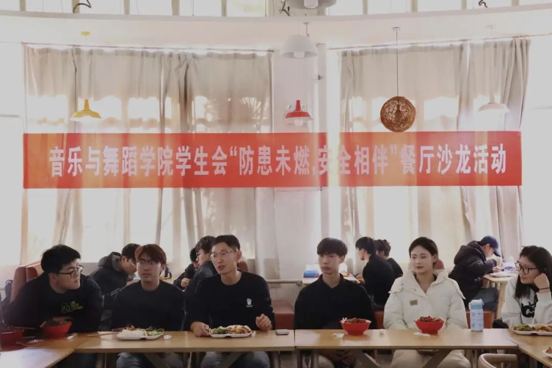 为进一步规范学生寝室安全行为,强化消防安全防范意识,搭建师生沟通交流的桥梁。11月26日,18av 于湖苑餐厅一楼成功举办“防患未燃,安全相伴”主题餐厅沙龙活动,辅导员王森远及各级学生代表参与此次活动。