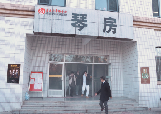 随着模拟火情警报在琴房楼内急促响起,各楼层负责教师迅速反应,组织练琴师生进行紧急疏散。参与演练的师生们沉着冷静,用袖口、湿毛巾等捂住口鼻,低姿弯腰,沿着指定疏散通道,快速、有序地向楼外安全地带撤离。整个疏散过程紧张而不慌乱,在预定时间内,全体参演师生均安全抵达指定集结地点。