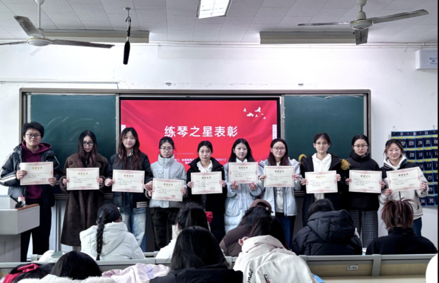 为培育精益求精的治学风气,激发学生专业学习热情,18av 持续打造月度“练琴之星”学风建设品牌活动。学院以“以练筑基、以评赋能”为导向,旨在搭建互学互鉴、争先创优的成长平台,使其成为彰显严谨学风、引领学生成长、展现育人成效的重要平台,助力学子在艺术道路上稳步前行。12月份“练琴之星”评选表彰活动于9#309圆满举办,辅导员王森远及各年级学生代表参加活动,共同见证优秀学子的荣耀时刻。