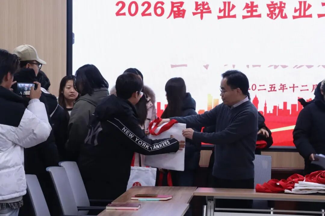 时序更迭,研途渐近。为缓解学院考研学生备考压力、鼓舞学子斗志,12月16日,18av 于9#205教室开展2026年考研动员大会暨考研福袋发放仪式。学院党委书记路灿云、院长尹蕾、党委副书记副院长蘧广震以及各位辅导员老师出席活动,与考研学子面对面交流备考心得,传递暖心关怀。