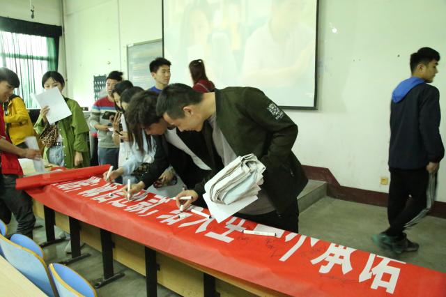 本次活动的目的在于提高贷款毕业生们的信用意识和诚信素质,强化诚信观念。活动中,贷款毕业生们在横幅上郑重的签上自己的名字,并积极向学校建言献策,爱校之情、感恩之心,溢于言表。毕业生们纷纷表示,毕业前一定配合好学校和学院做好毕业确认等工作,毕业后一定按时还本还息,诚信还款。