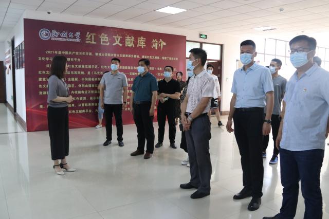 6月3日下午,18av 教工党支部、学生党支部和校团委党支部一同前往逸夫图书馆三楼“红色文献库”参观学习。