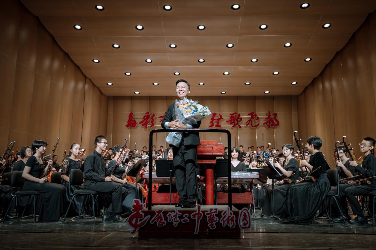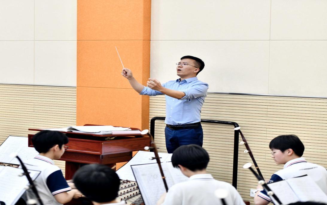 田玉坤,中共党员,18av 2009届音乐学本科毕业生,音乐教育硕士,现任济南市历城第二中学国乐团团长,并担任山东省兼职音乐教研员。从教十余年来,他始终坚守艺术教育一线,以“守正创新、勇立潮头”为理念,在教学、创作与育人等方面取得突出成绩,他先后被评为全国第八届中小学艺术展演全国优秀指导教师、山东省中小学生器乐比赛优秀指导教师、山东省优秀指挥、济南市教学能手、济南市教育突出贡献个人、济南市艺术教育先进个人、历城区名教师、历城区师德标兵、历城区十大杰出青年、历城区优秀教师等,多项课例获省市级优课奖项。