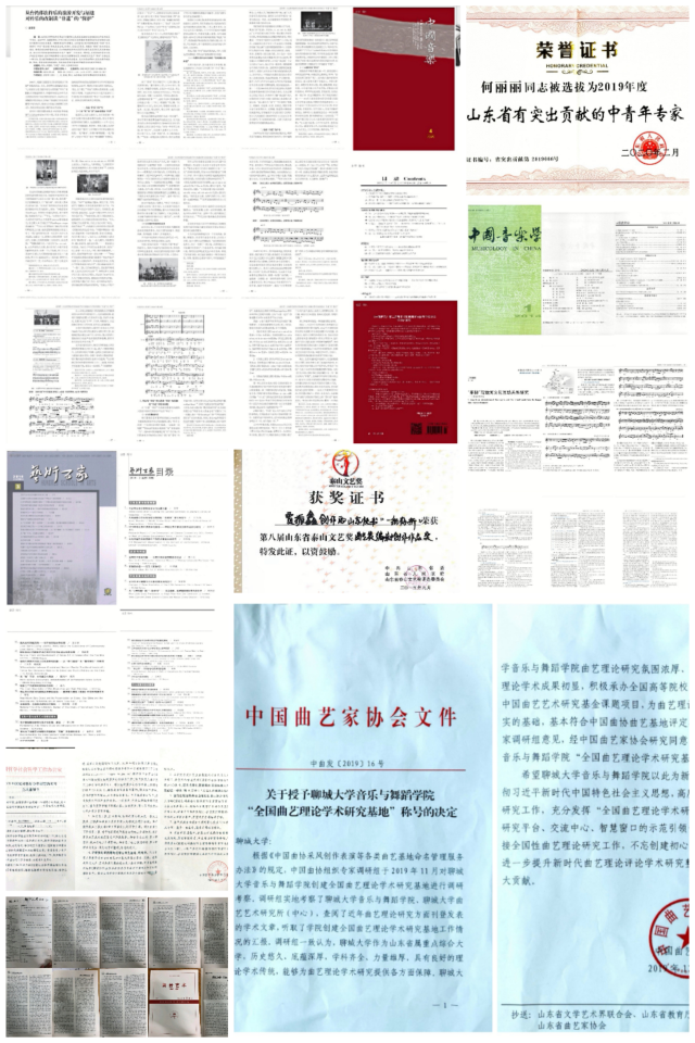 运河流域区域音乐研究、曲艺音乐研究和中国古代音乐史学研究特色鲜明。运河流域区域音乐研究团队成员在《音乐研究》、《中国音乐学》等专业核心期刊发表学术论文12篇,被CSSCI收录4篇,获得省部级奖项4项,培育“山东省有突出贡献中青年专家”1名;曲艺音乐研究方面,与中国曲协联合建立了全国高校唯一的曲艺理论研究基地,承担国家社科后期资助、中国曲艺艺术基金课题2项,参与中国曲艺艺术基金委托课题、参与撰写中国文联理论中心委托课题多项,在曲艺研究唯一专业杂志《曲艺》以及《中国文艺评论》《艺术百家》、人大复印资料转载等重要期刊发表曲艺论文40多篇,承担了2019年中国艺术发展报告曲艺部分编写工作,获泰山文艺奖创作奖1项,一名教师2次成为山东省签约艺术评论家;中国古代音乐史学研究获得国家级课题2项,教育部、山东省社科规划项目等课题多项,发表相关论文70余篇,其中校B类核心1篇,C类核心5篇,CSSCI论文和中文核心论文25篇,省部级奖励6项,山东省高校社科优秀成果4项,1人被评为山东省社会科学学科新秀,部分成果被《舞台艺术》(人大复印资料)、中国社会科学网、中国音乐学网等全文转载,《高等学校文科学术文摘》论点摘登,其他转载引用共计70余次。学院所获学科建设成果在全省同类综合性大学艺术体育院校中居前列。