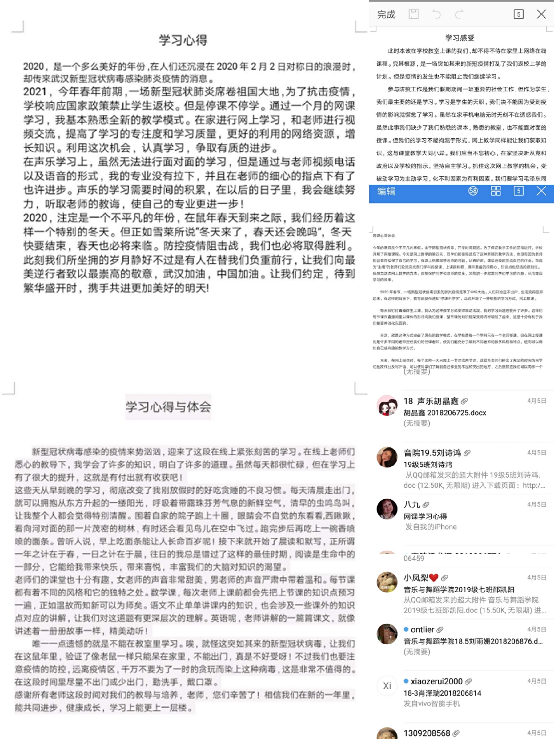 数个月的网课生涯使同学们感触良多,纷纷以邮件的方式表达了自己的感受与看法。自2月17日线上教学课程开始以来,同学们慢慢适应了这种趣味十足的教学方式。大部分同学表示,这种教学方式新颖独特,学习兴趣也提升了许多。老师们每节课以“网红主播”的形式为同学们直播授课,并采用网上课件帮助同学们梳理每节课的框架骨干,十分有利于同学们接受并消化所学的知识内容;少部分同学表示线上的课堂形式缺少了平日里的学习气氛,缺少与老师的互动性,容易使自己产生侥幸偷懒的心理从而不认真听讲。
