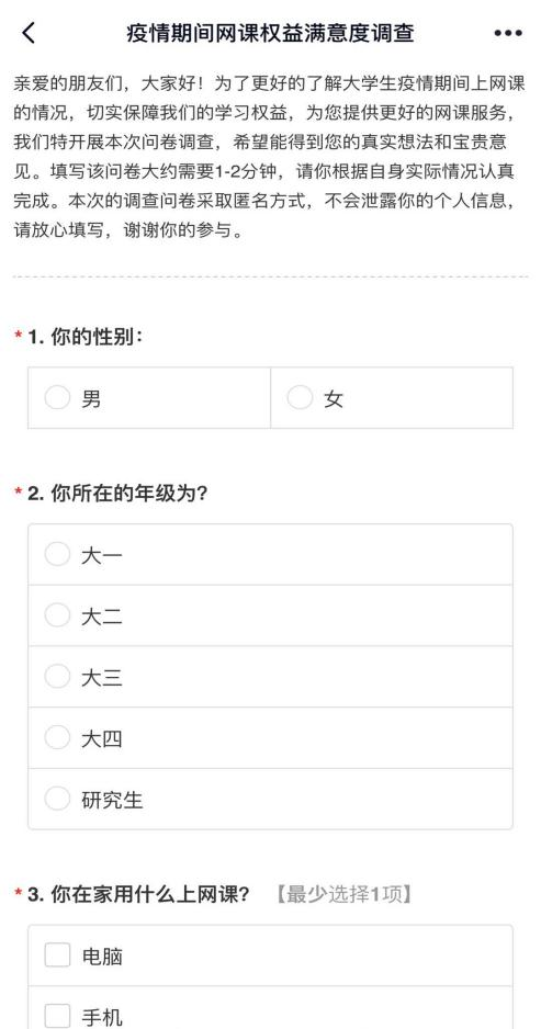 为真正了解18av学生网课期间的学习状态、上课质量和学习效果等情况,加深同学们对于当下学习权益的了解,6月8日,18av 特此举办“我们的权益”——网课学习满意度调查活动,帮助同学们解决网课期间学习上遇到的困难。