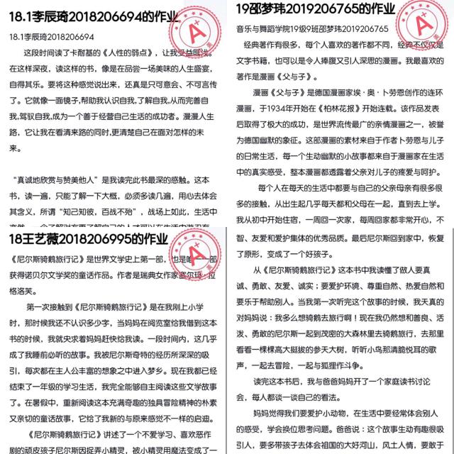 此次活动采用线上报名的形式,报名成功的同学通过文字叙述的方式向其他人介绍读过或正在读的书,与他人分享书中的内容,展示自己的理解与认识。同学们在活动中讨论气氛热烈。最后,同学们将读书体会与感受以文字的形式提交到作业中参加评比。其中李辰琦、邵梦玮、王艺薇等同学的读书分享被评为优秀作品。