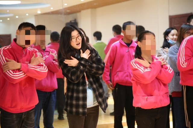 志愿服务队参观了自闭症儿童完成的毛衣、钻石画等精美作品,还观看了孩子们带来的精彩文艺表演。其中自闭症患儿的独唱《万爱千恩》声情并茂,令在场志愿者们为之动容。接着,志愿者们与自闭症患儿进行互动,手语舞蹈《谢谢你》、《天之大》,节奏感强烈非洲鼓等。最后,在一曲志愿者与孩子们合唱的《我爱你中国》中,志愿活动圆满结束。