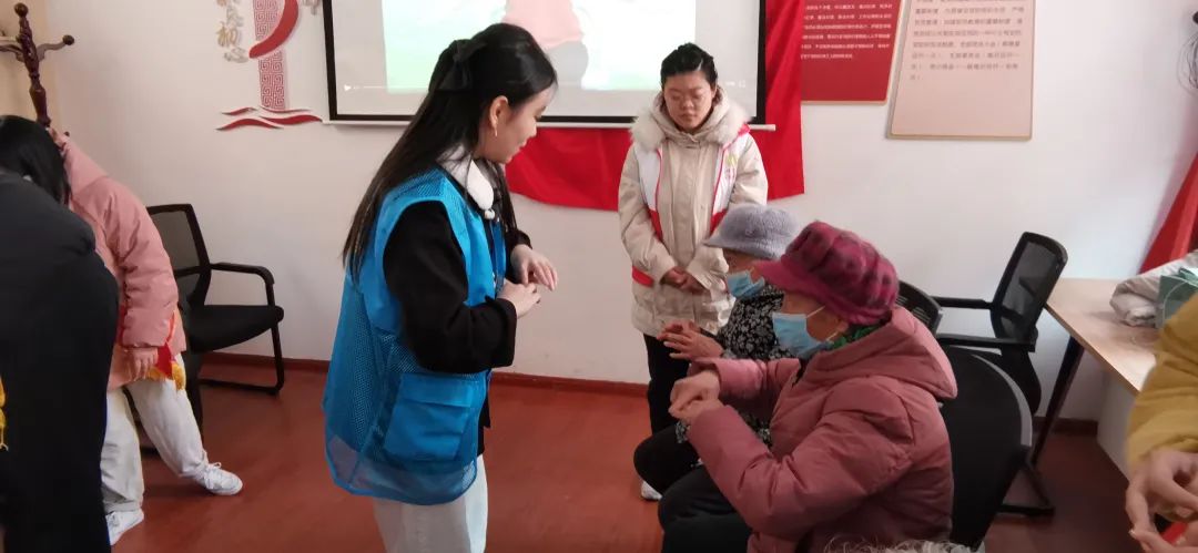 首先,志愿者同老人一起复习《手指操》,让《手指操》内容深深印在老人们的脑海中。老人们表示,这段时间他们一直在坚持做手指操,精神状态有了明显改变。接着负责人为老人们播放了精彩的小品《吃面》,老人们无不被幽默的情节逗笑。最后,负责人们陪老人一起聊天,有的把自己学习生活中的趣事讲给老人,有的听老人讲过去的故事,还有的在给老人读报纸,大家在一起其乐融融。