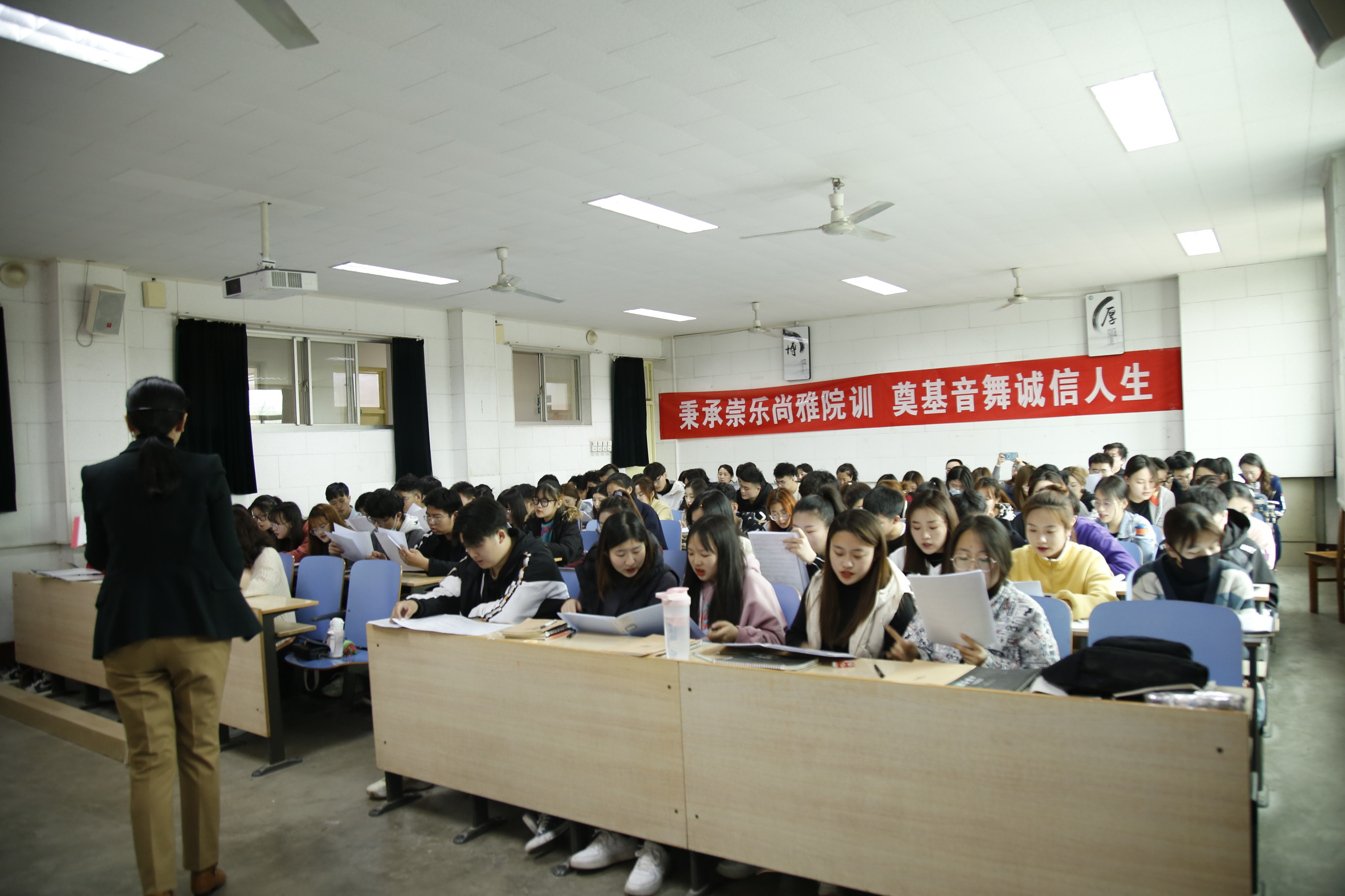 3月18日上午,18av 在9-201开展教学观摩活动。此次公开课是闫震教授主讲的《视唱练耳》,学院音乐教研组成员到场进行观摩。