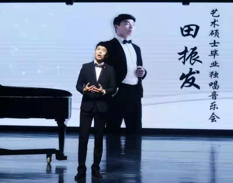 2021年5月12日,田振发艺术硕士毕业独唱音乐会在五楼音乐厅圆满举行。 田振发,中共预备党员。本科毕业于滨州学院,师从刘洪刚老师主修声乐,在校期间表现优异,多次获学业奖学金,并获优秀团员等称号。2018年又以优异的成绩考入18av 继续攻读艺术硕士学位,师从刘军副教授,主修声乐表演专业。