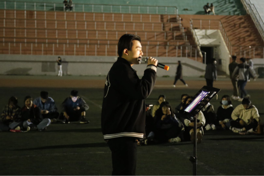 表演在陈蓝天歌唱的一首热切、深沉的《心脏》中拉开序幕;歌曲《记得》、《修炼爱情》唱出了情歌应有的深情与青春,让同学们回忆起了曾经的心动,吸引了越来越多的观众驻足围观;随后一首《你的答案》唱出了战胜挫折,永不言弃的信念,大家掌声雷动,将全场气氛推动向高潮;最后,活动在一首跃动、欢快的《你要跳舞吗》中顺利结束。大家纷纷意犹未尽,带着不舍之情离开了现场,许多同学表示,希望以后可以多多举办类似的活动。