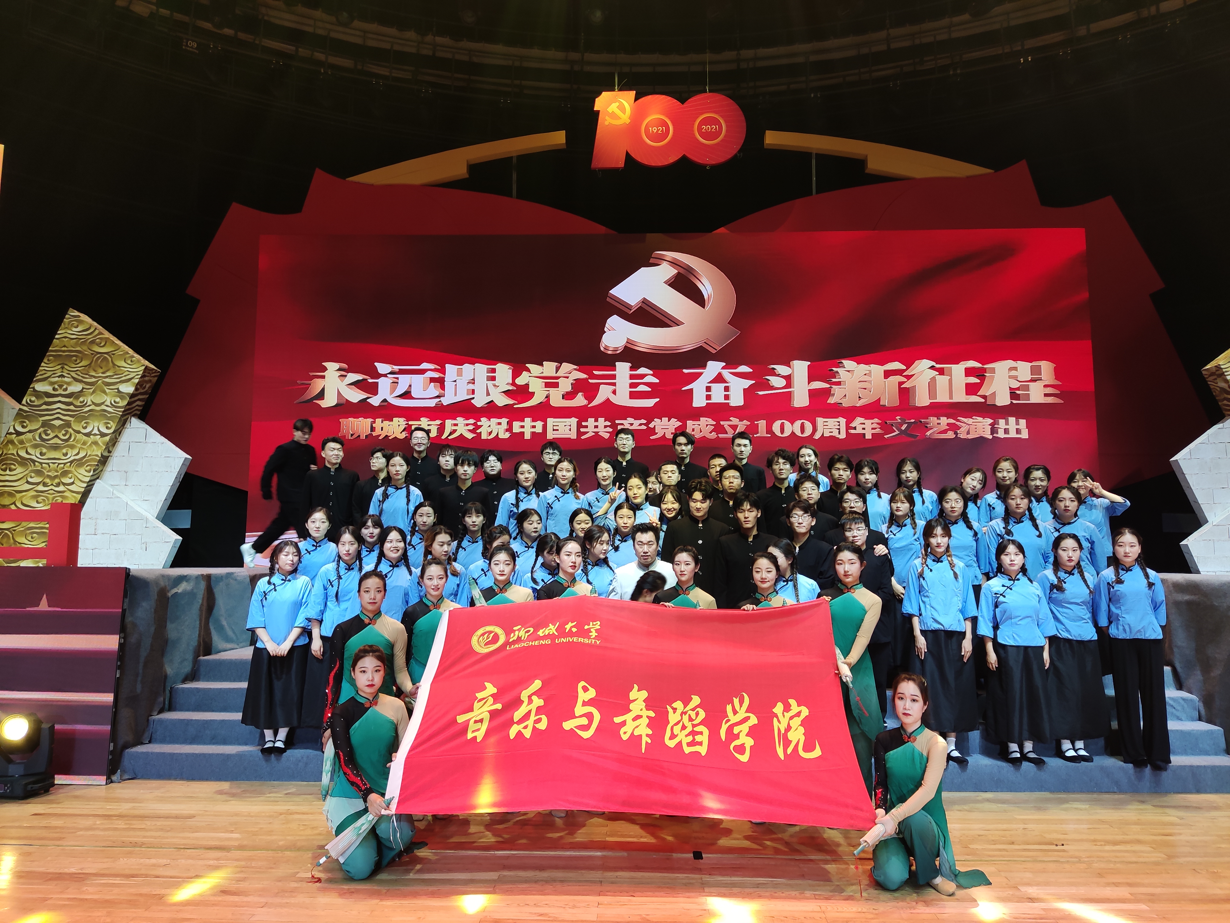 6月26日晚,18av 师生登上水城明珠大剧院舞台,参与“永远跟党走·奋斗新征程”聊城市庆祝中国共产党成立100周年文艺演出。学院音乐系主任李斌、舞蹈系主任李雯、教师白雪、徐东阳、魏炜以及80余名学生参与了此次文艺演出。