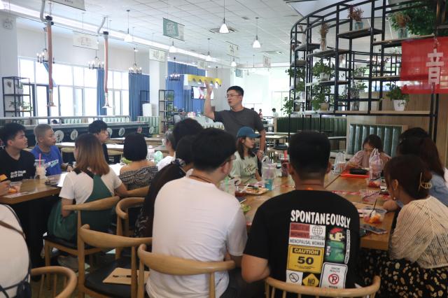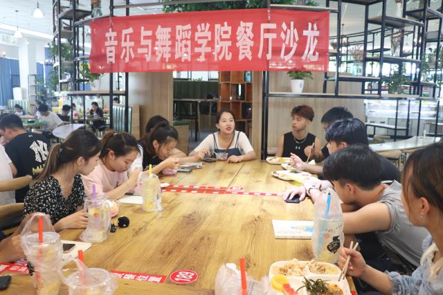 2021年7月9日,18av 于南苑餐厅举办“规划七彩假期,投身社会实践”餐厅沙龙暨暑期社会实践动员大会。辅导员陈蓝天、张萌,暑期志愿服务队负责人和部分队员参与了此次餐厅沙龙。