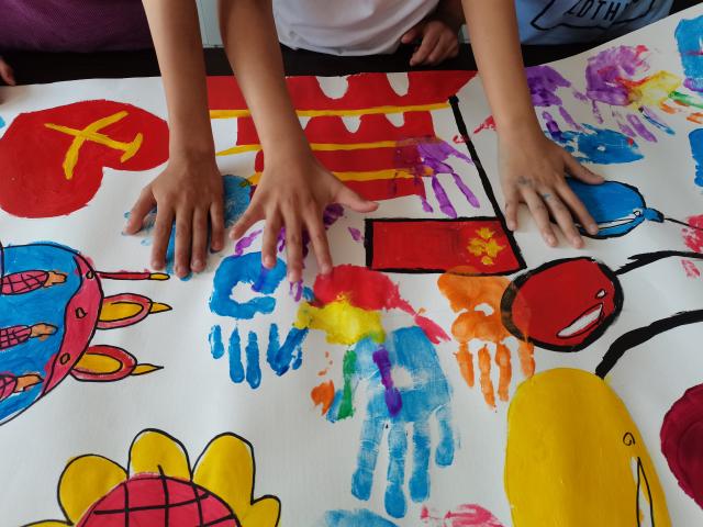 活动中,志愿者们为激发孩子们的学习热情,组织孩子们进行乐器练习,让他们体会不同乐器带来的感觉,然后志愿者与孩子们共同参与了一场大合唱,旨在用音乐消除彼此的陌生感,为建立美好友谊塑造了一座桥梁。接着志愿者进行一对一辅导工作,志愿者们耐心的为孩子进行作业辅导,严格地监督孩子们完成作业。做完作业后就是有趣的绘画环节和泥塑环节,孩子们绘画了一副手印画,祝福我们的祖国繁荣昌盛,他们还捏造出自己喜欢的东西,有玫瑰花、金箍棒等等,整个教室充满了欢声笑语,此次活动调动了孩子们的积级性,有效提高了孩子的动手能力和沟通能力。
