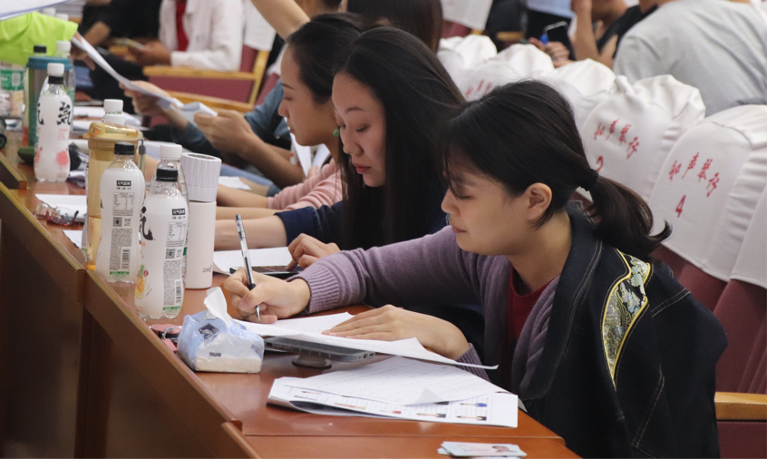 专业测试开始前,评委老师对每位同学的身份逐一进行查验,严格核对信息,确认信息无误后才允许考生进行专业复测。复测以学号为顺序,11-12位同学为一组,男、女分别进行专业测试。测试内容包括基本功软开度、技术技巧、剧目片段和即兴表演四项。场内每位同学都认真对待测试,拿出了最佳状态,充分体现出了新生蓬勃的朝气与热情,展现了18av 学子的专业素养。舞蹈系的老师们也本着公平、公正的原则,对新生的专业综合素质进行评分。复测结束后,李雯老师对新生的专业能力给予了肯定,并指出大学是一个崭新的阶段,希望同学们学会规划未来,打好专业基础,合理安排课余时间,人生的机遇是为有准备的人提供的。
