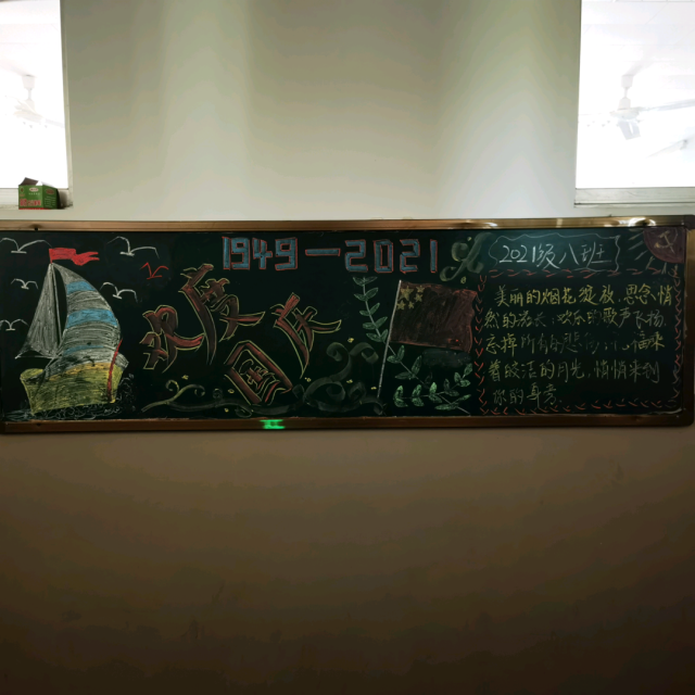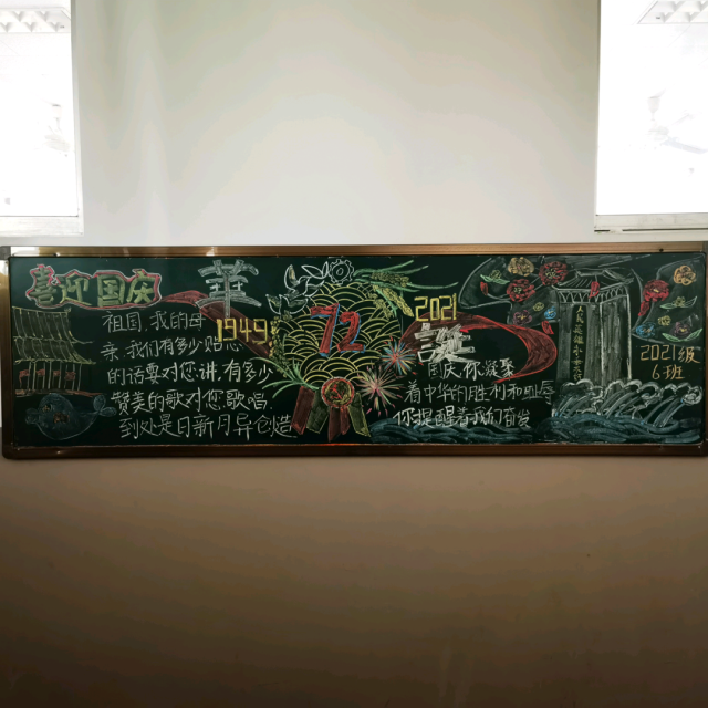 此次活动由21级各班团支部带领各班同学积极参加 ,搜集资料,设计版面,紧紧围绕“国庆”这个鲜明的主题,在黑板上尽情挥洒,用缤纷的色彩描绘了他们心目中的节日,并配以情感丰满的文字,体现了同学们对祖国母亲的热爱,以及希望祖国繁荣的愿望。同学们画出心意,歌颂祖国,一颗红心致敬国庆中秋主题的黑板报经过几天时间已跃然黑板上,这一幅幅图文并茂的画面,充分展现了音院学子积极向上的精神风貌。